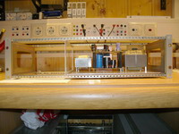 Ein 19 zoll Gehäuse aus dieser Zeit, mit Originalen Griffen machte sich gut. Die Suche nach alten Potiknöpfen war auch nicht schwer. Man kennt diese von Kinoverstärkern,