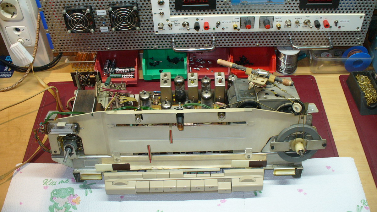 Gutes Kontaktspray, dosiert an alle elektronischen Kontaktschieber, Potentiometer und Röhrenpin´s. Harz und Säurefreies Öl auf die mechanischen Teile dosiert auftragen, vorher reinigen und von den alten Verharzungen befreien.
